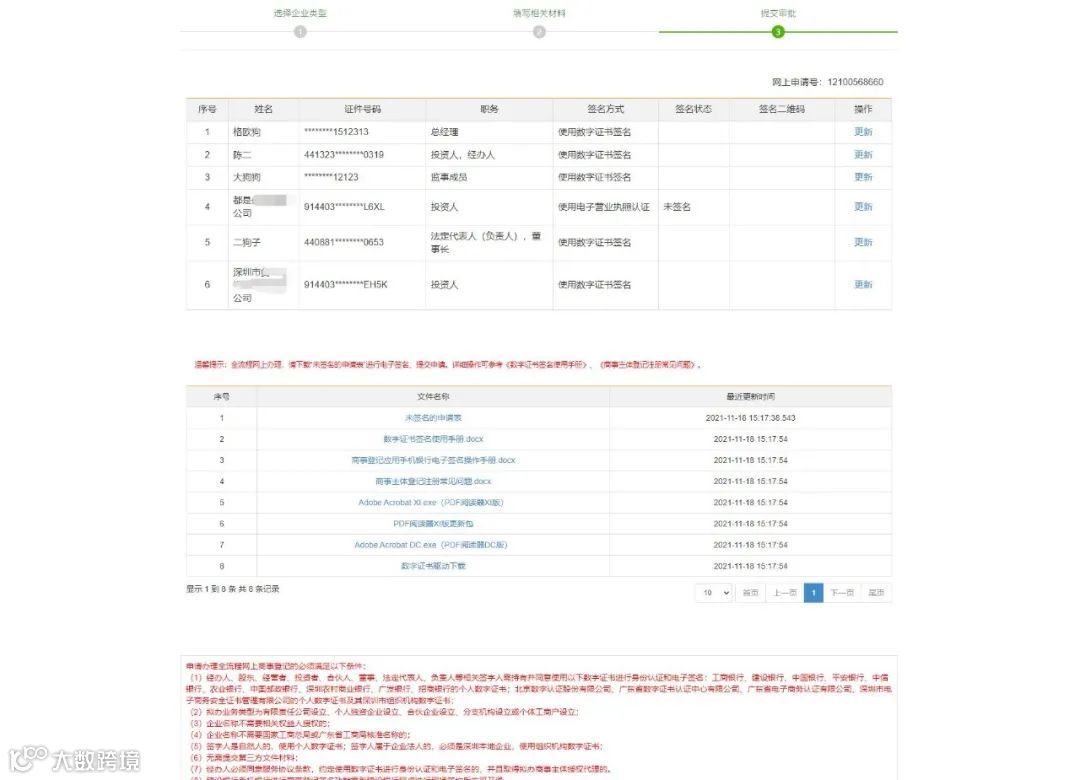 使用电子营业执照签名的法人股东可在系统下载其他股东“已签名的申请表”进行企业电子营业执照扫码签名。扫码签名完成之后,系统会自动提交审核,具体操作如下: