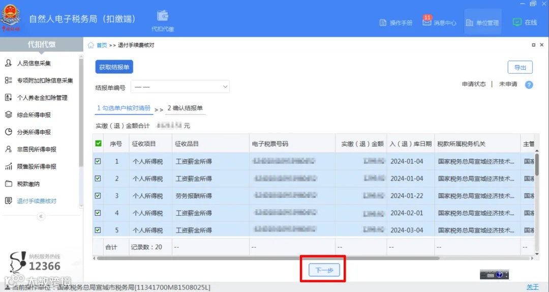 勾选单户核对清册,点击【下一步】。