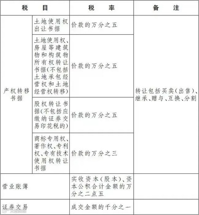 根据《中华人民共和国印花税法 》(中华人民共和国主席令第八十九号)第三条规定,印花税的税目、税率,依照本法所附《印花税税目税率表》执行。