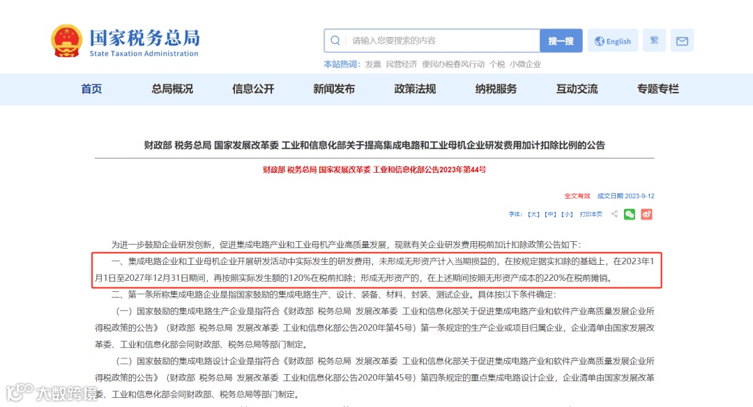 二、除集成电路和工业母机外,研发费用加计扣除比例统一为100%