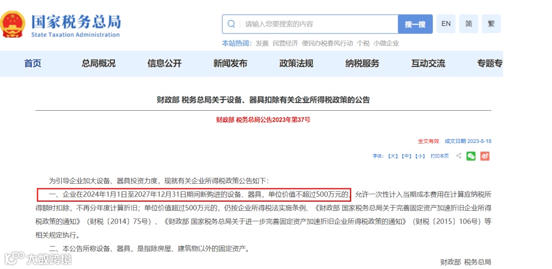 一、500万以下新购进设备、器具一次性扣除