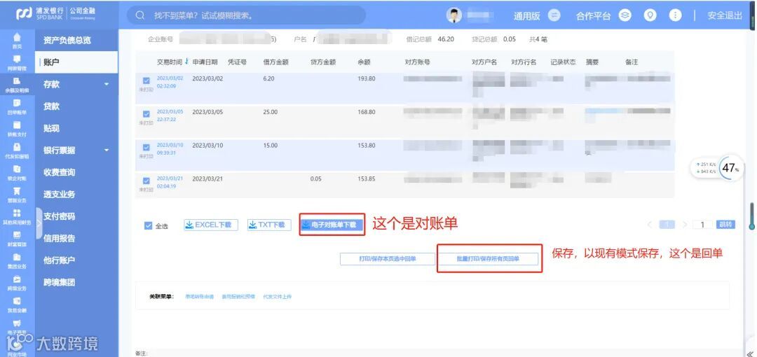 一、银行流水对账单下载