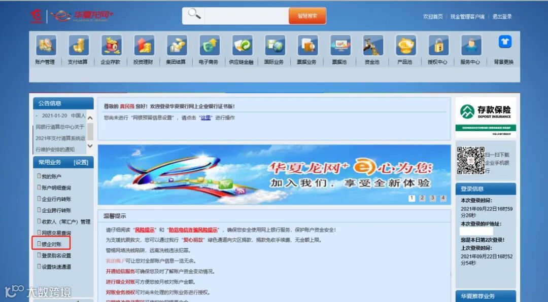 各老板请注意:1.4.7.10月都需要网银对账(每季度需要点击对账,不对账会导致对公银行账户被冻结无法使用)