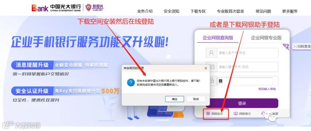 首先网页搜索中国光大银行官方网址,下载网银助手