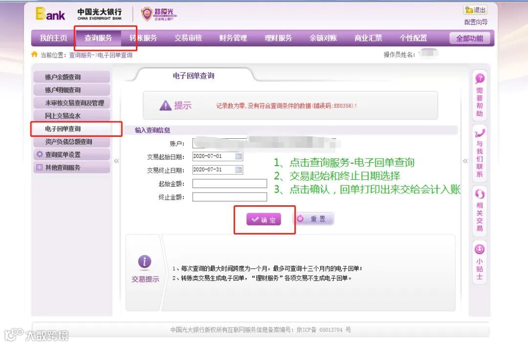 登录》首页》查询服务》电子回单查询》起始日期(一般按月导出,当月第一天到最后一天。例如2023.4.1-2023.4-30)