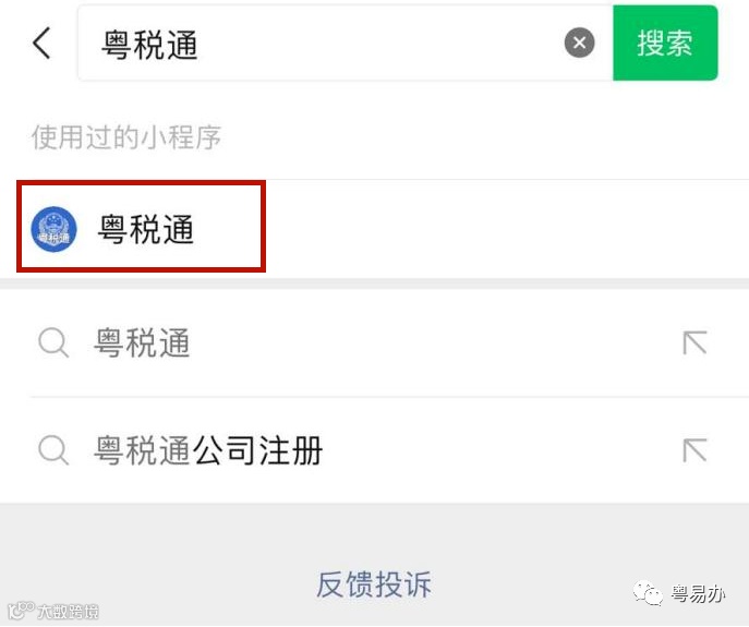 微信上搜索“粤税通”小程序,点击进入“粤税通”小程序。