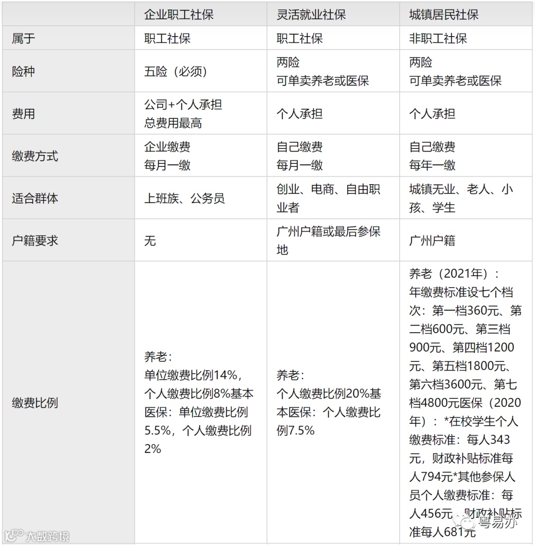 现在有三种类型不同的社保,适合不同的人群,广州灵活就业社保也属于职工社保,适合灵活就业人群,城镇居民社保属于非职工社保,缴纳费用更低,适合无业、老人等人群。