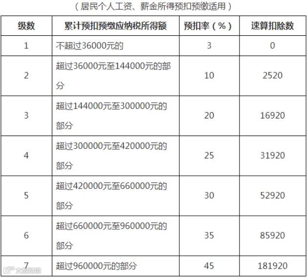 附:个人所得税税率表