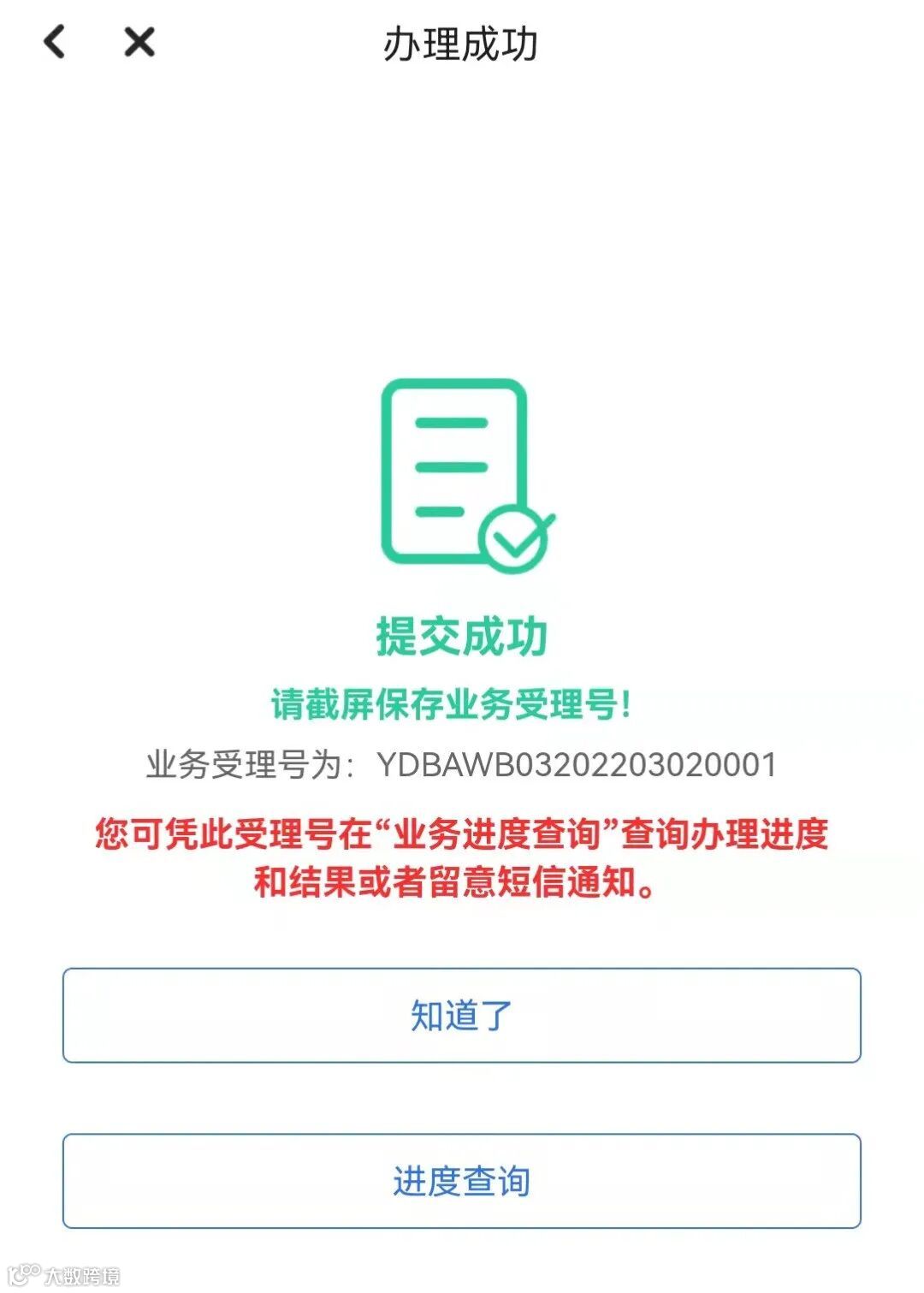 7. 办理完成后,后台工作人员会在2个工作日内完成审批。参保人可根据指引查询业务办理进度。申请业务审批通过或不通过,系统均会发送提醒短信至指定手机号码。