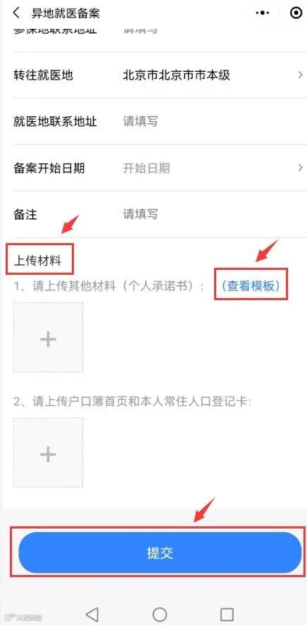 5. 选择具体需要办理的业务情形,下载相关材料范本或空表。(以“临时异地就医人员备案”为例)