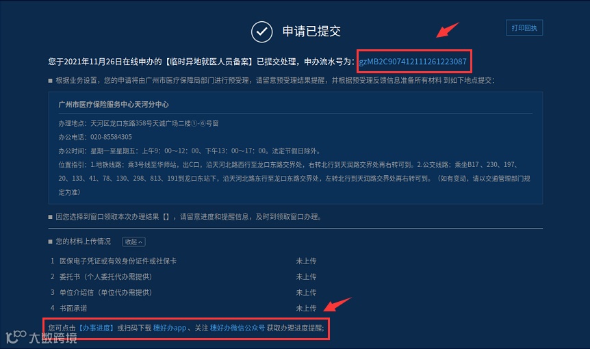 2.已办理异地就医备案且经审批通过后,参保人可持本人医保电子凭证或社保卡在备案地的异地就医联网结算医疗机构就医并直接结算医疗费用。直接结算遇到问题的,可直接与广州市医保中心联系处理,或拨打020-12345咨询反馈。
