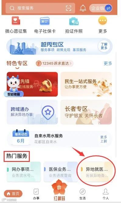 1. 下载“穗好办”APP。打开后在“首页—热门服务”进入“异地就医备案”专栏,也可以在搜索栏输入“人员备案”,进入后点击“更多”,找到对应的备案类型。