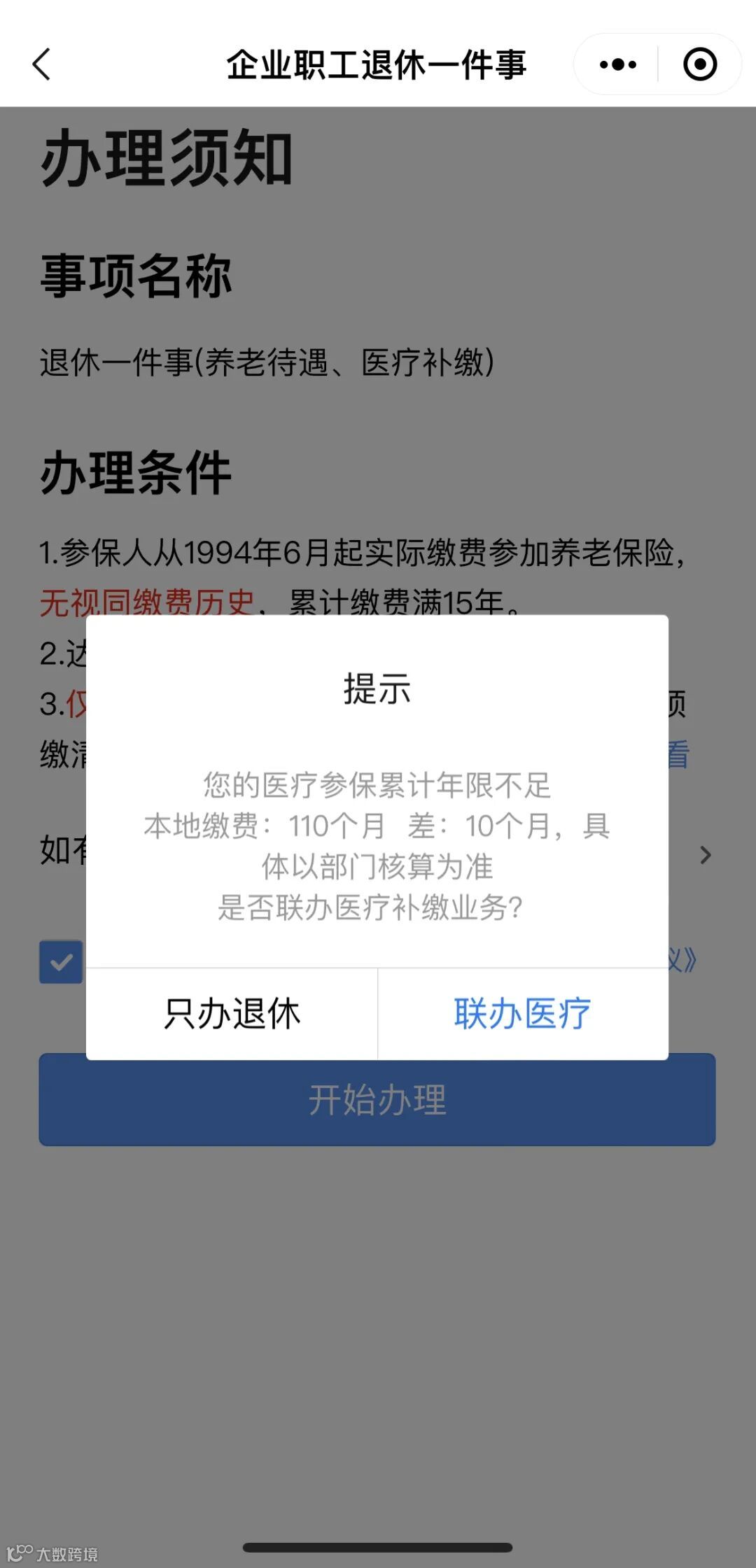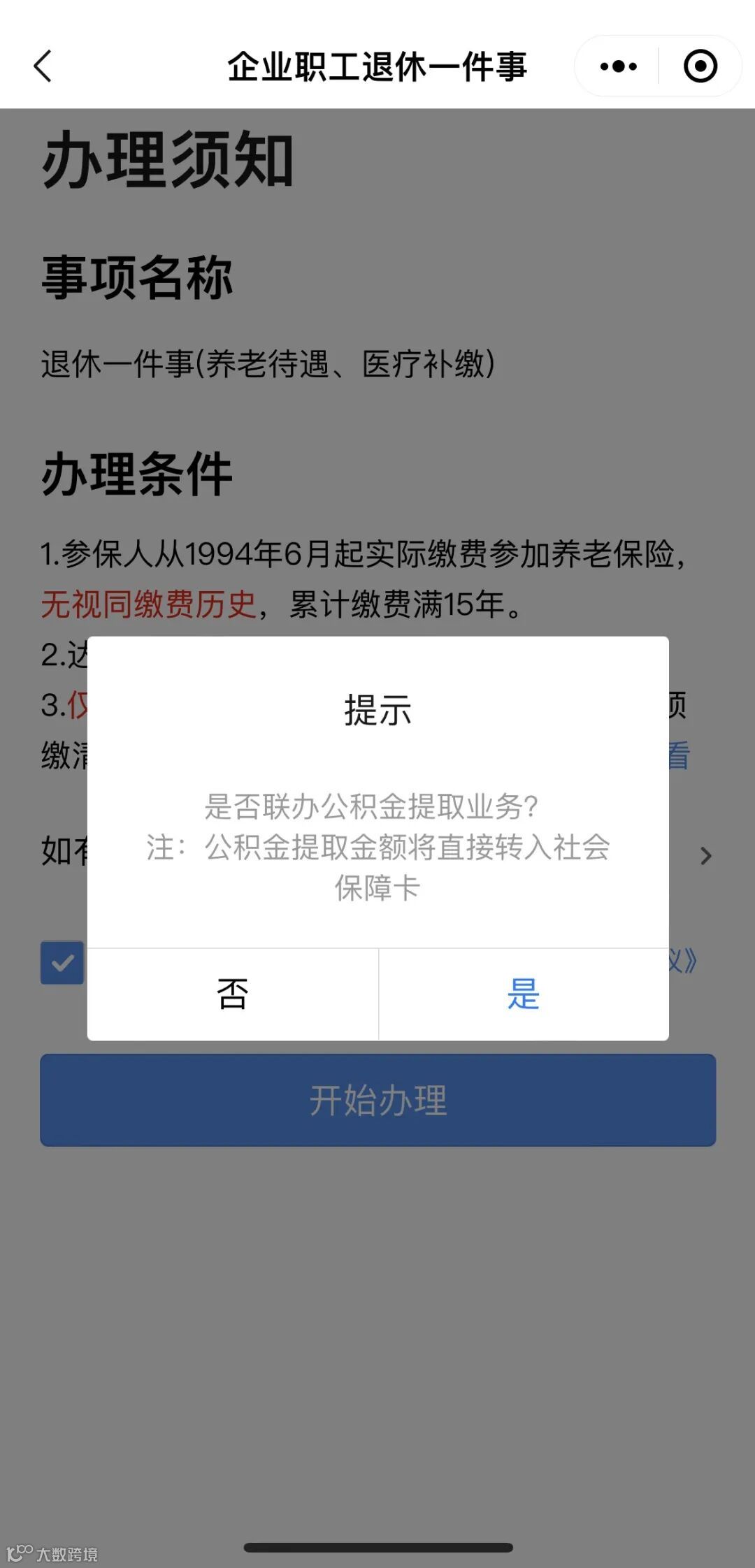 # 第二步 #人脸识别后查看办理条件,点击开始办理;