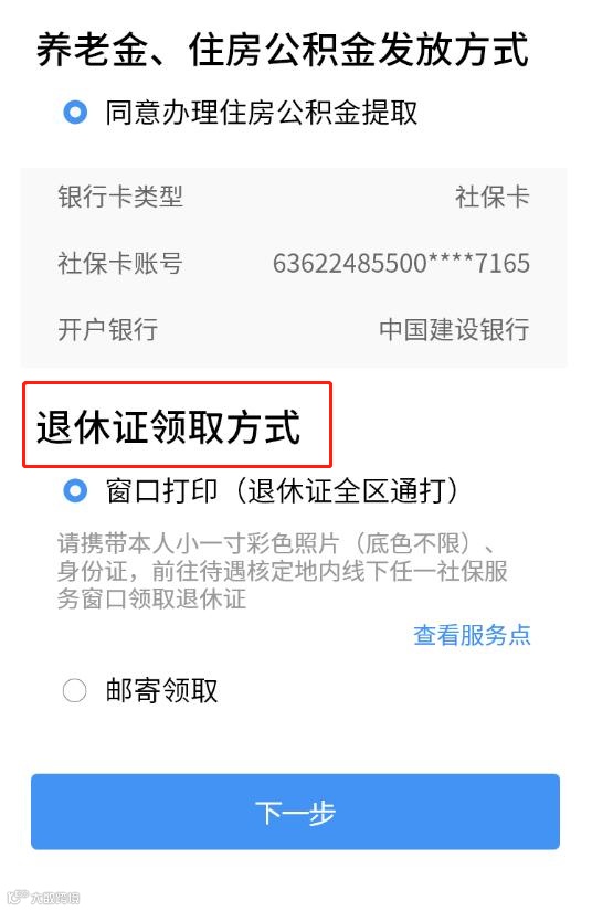 退休证领取方式有两种,窗口打印和到付邮寄领取;