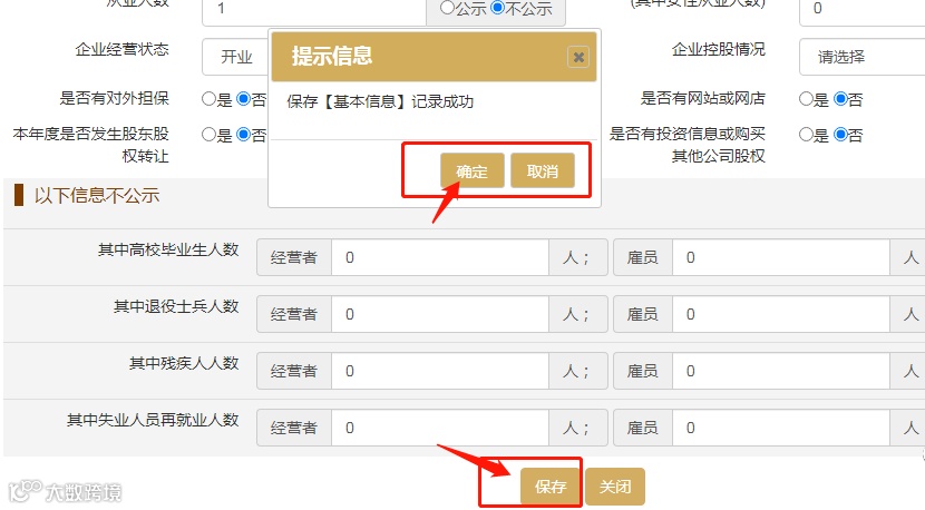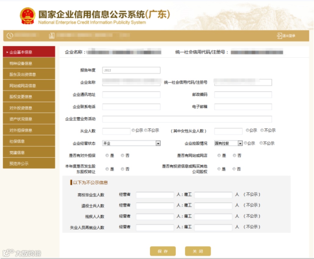 然后按项目提示,依次填写年报相关内容,年报中部分数据可自行选择对外公示或不公示。