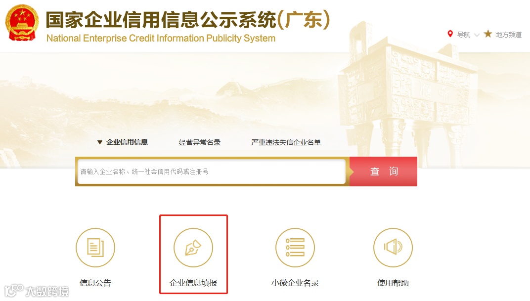 浏览器搜索“全国国家企业信用信息公示系统”,或直接输入网址登录: