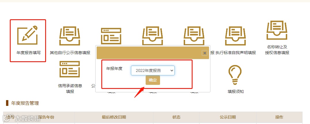 注:如果往年年报未报送,须先补录往年年报后方可填报本年度年报。