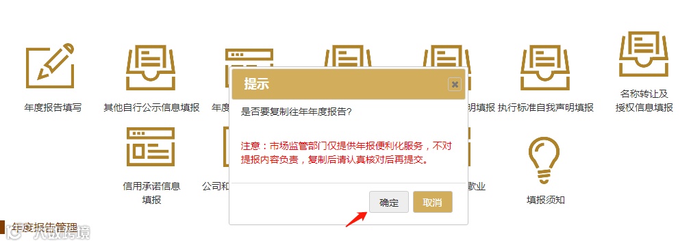 五、若企业基本信息本年度未出现较大变化,可以选择【复制往年报告】