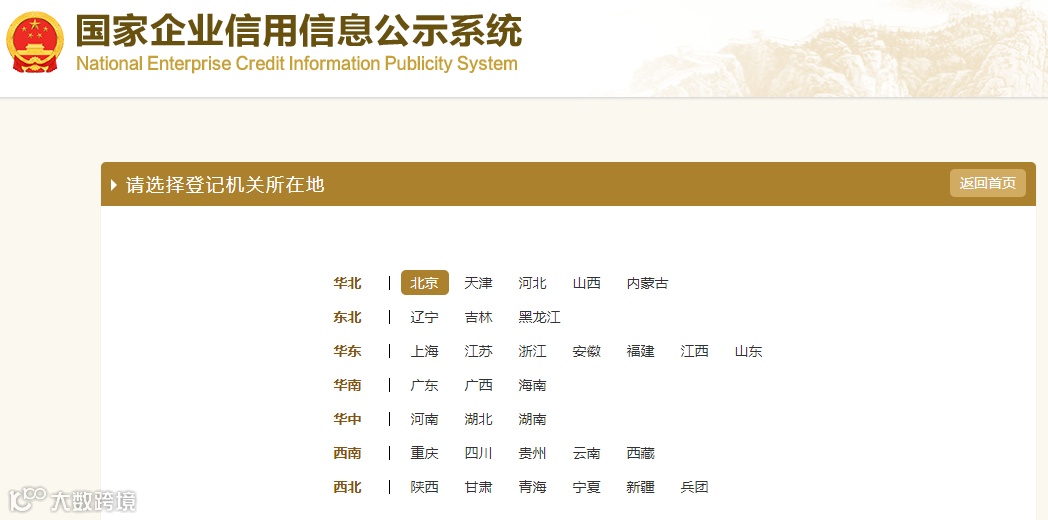 2、进入首页后,点击“企业信息填报”图标,在弹出页面选择所在省份(以北京为例),进入企业信息填报页面。