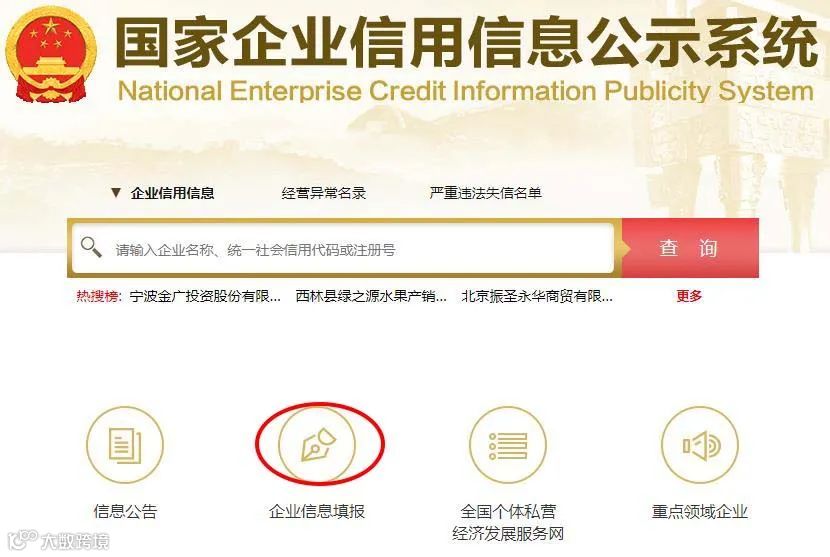1、输入网址http://www.gsxt.gov.cn,进入国家企业信用信息公示系统首页。也可以在浏览器搜索栏输入“国家企业信用信息公示系统”,找到后缀有官网字样的搜索结果进入系统主页面。