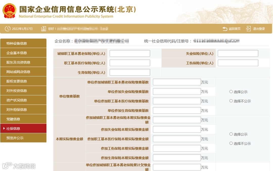 14、填写社保信息。参保各险种人数指报告期末参加社会保险的职工人数(不含离退休人数)。单位缴费基数指报告期内单位缴纳社会保险费的工资总额,按缴费人员的应缴口径计算。