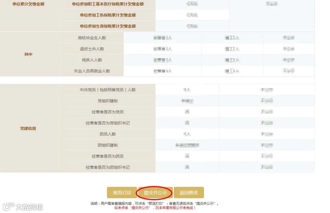 提交并公示后,如发现有部分内容填写错误的,在6月30日前可以登录年报系统页面进行修改。若发生修改,务必在修改后再次点击“提交并公示”,否则系统将显示为未完成年报状态!