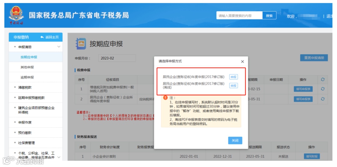 查账征收纳税人登录广东省电子税务局(https://etax.guangdong.chinatax.gov.cn/xxmh/)