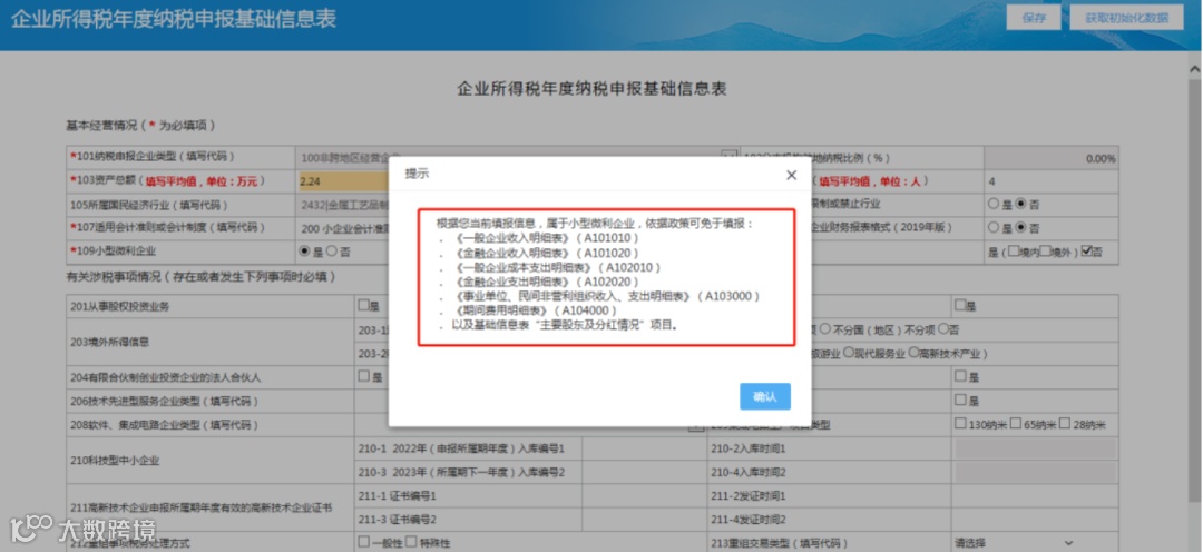 进入申报界面,系统提示小型微利企业可免于填报下图所示表格