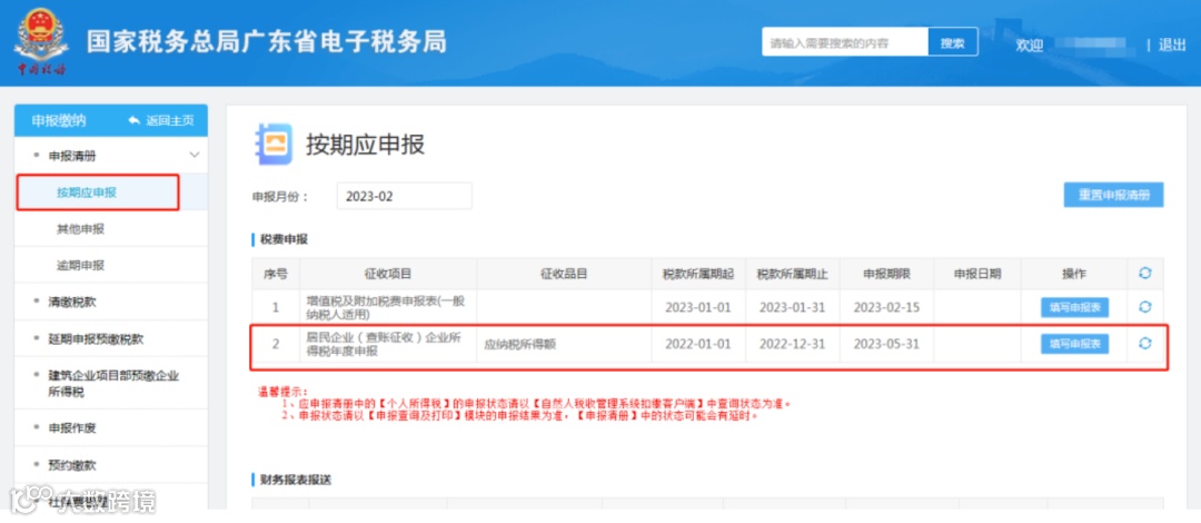 温馨提醒:申报企业所得税汇算清缴前,需要先完成年度财务报表的申报,否则无法进入汇算清缴报表填报。