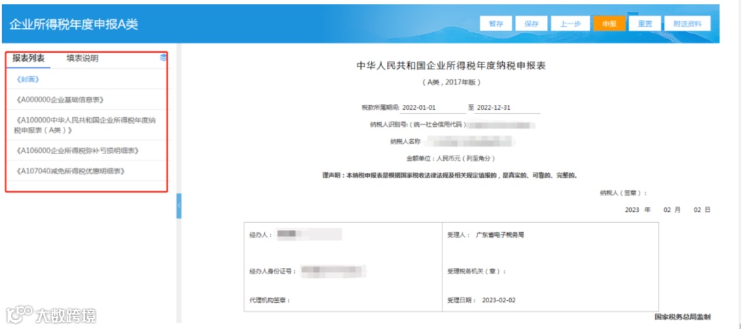进入申报表填写界面,页面左侧为主附表导航栏,可点击切换附表。