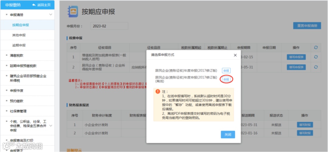 上面的红色框内容分为在线申报和离线申报。申报的状态不同,那么申报的流程也会有所不一样。你可以根据自己的企业需求选择合适自己的申报方式。下面做一个区分两者的申报流程: