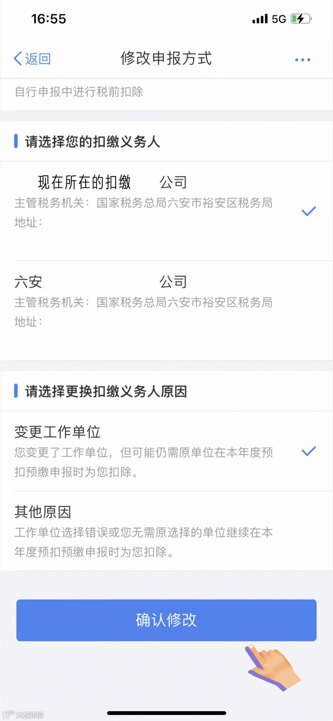 点击【确认修改】,系统会出现提示界面,请点击【确认提交】。