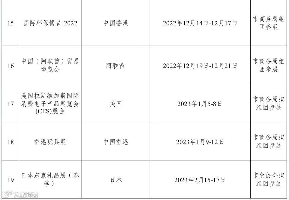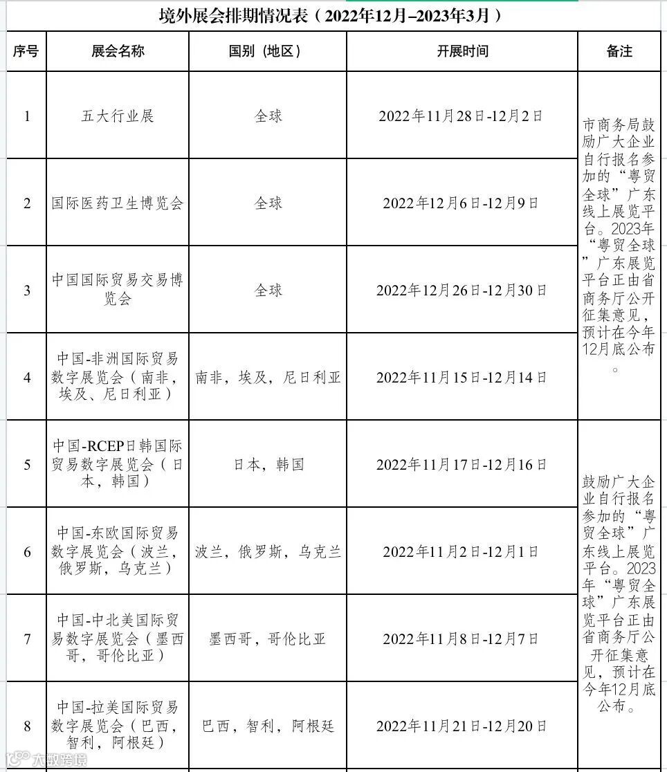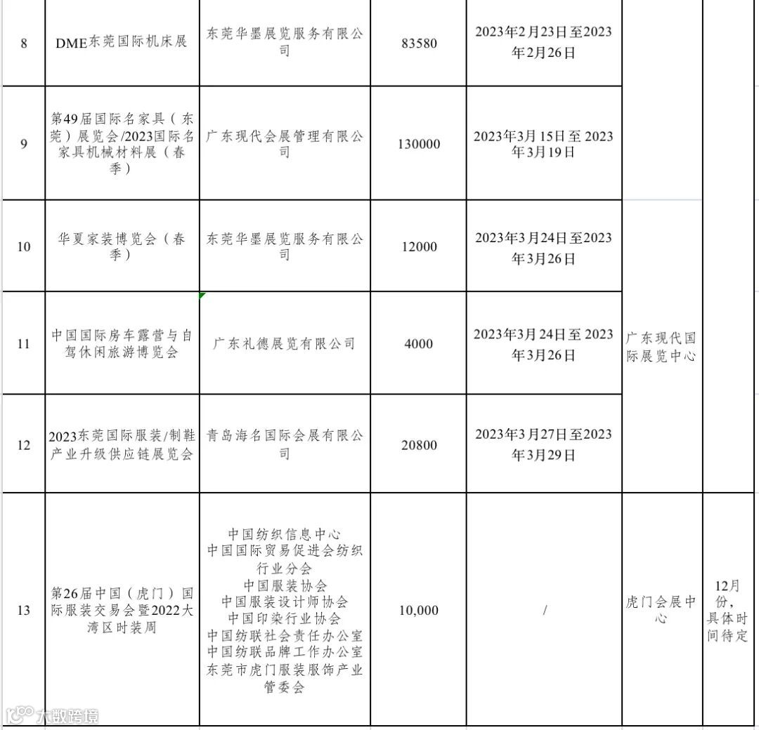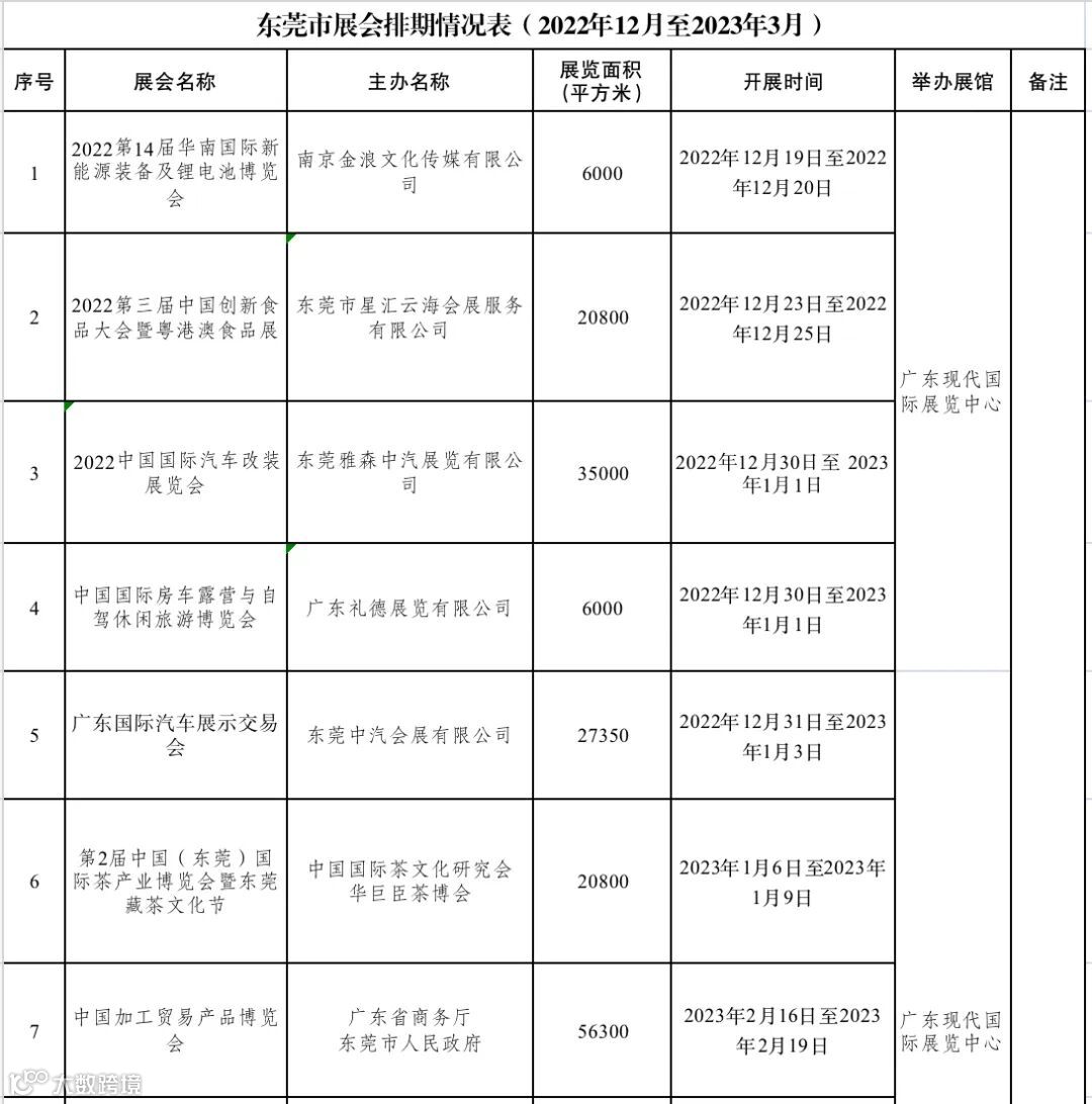 附:东莞市市内和境外展会排期情况表
