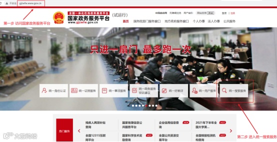 (1)访问国家政务服务平台,进入统一搜索服务。