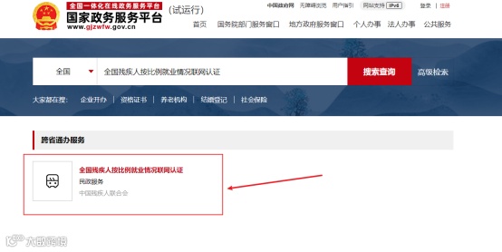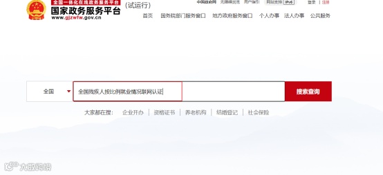(2)搜索“全国残疾人按比例就业情况联网认证”事项。