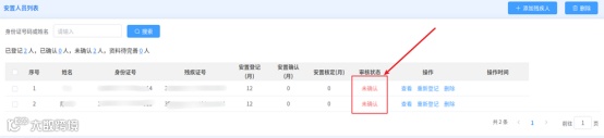 第五步:如果安置人员中的审核状态为“未确认”,请等待残联业务人员对申报人员信息进行审核。