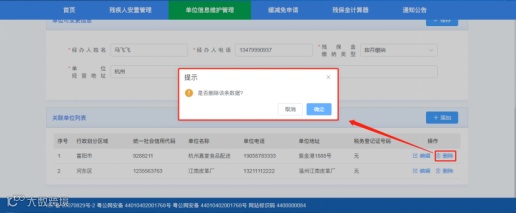 第三步:用户点击删除按钮,确认是否删除该条单位数据。