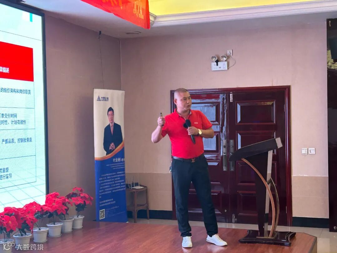 本次训练营邀请了成都艾瑞卡家居用品有限公司的贺总给大家分享艾瑞卡A9系统合作成果,首先贺总介绍了艾瑞卡的项目背景和历程,其次讲述了项目总结复盘分为组织升级提高规范性、PMC改善提高交期准时、品质提升确保客户满意、督导机制提升效率、7S推进现场改善、物料管控降低成本、绩效薪酬提升积极性、议事平台提升凝聚力以及工艺标准全面提升等8个板块,最后艾瑞卡表示感谢文武咨询一直以来的支持,并赠送荣誉锦旗。