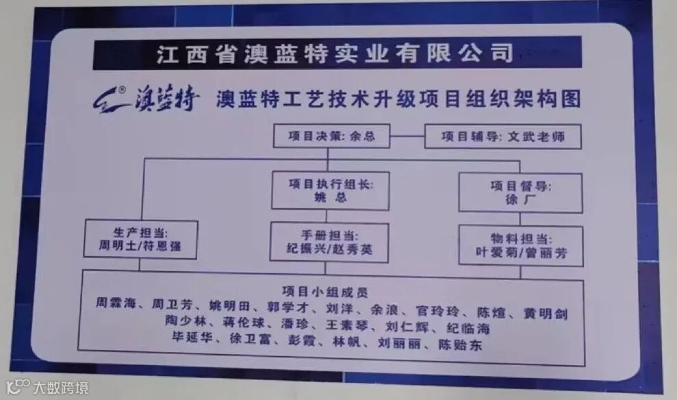 会议的最后,由澳蓝特余总对工艺技术升级项目动员讲话,余总提出文武咨询项目组老师带来了先进的工艺技术,来帮助个人及公司提升。希望大家把握机会,一起拼搏、相互促进,并在会上宣布本次升级项目组织架构。