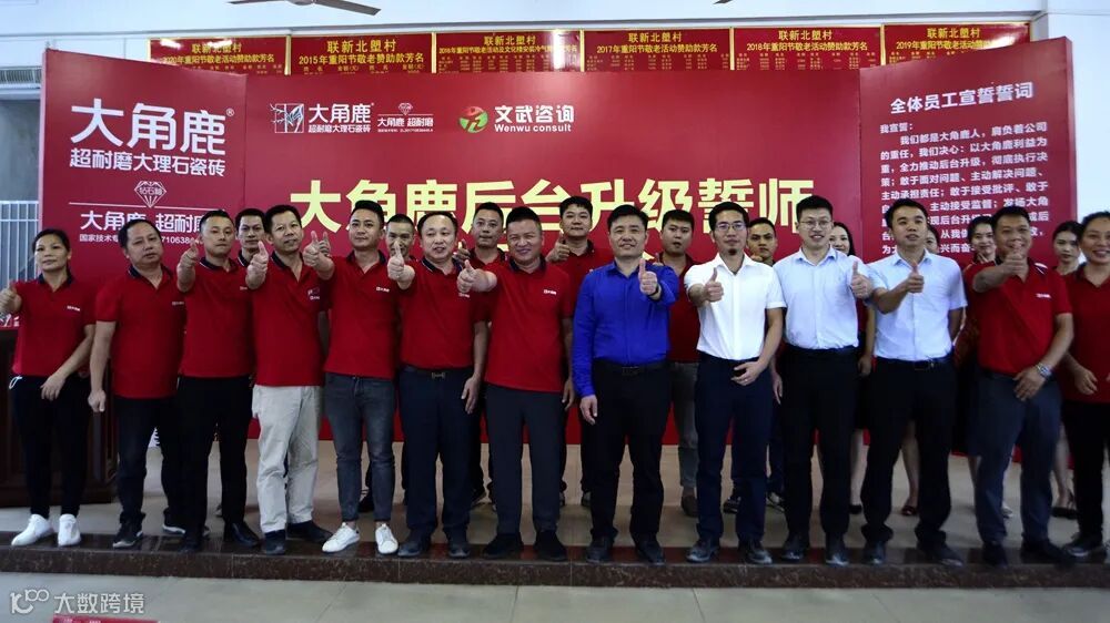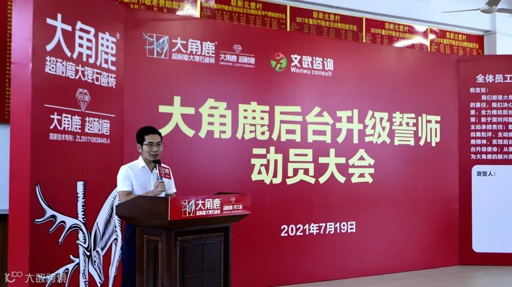 2021年7月19日下午,佛山大角鹿大理石瓷砖有限公司(以下简称“大角鹿”)后台升级誓师动员大会隆重召开!大角鹿董事长南总,广州文武咨询董事长叶老师、大角鹿项目组组长蔡老师、项目专员潘老师、项目专员陈老师,大角鹿西樵工厂全体员工出席本次大会。