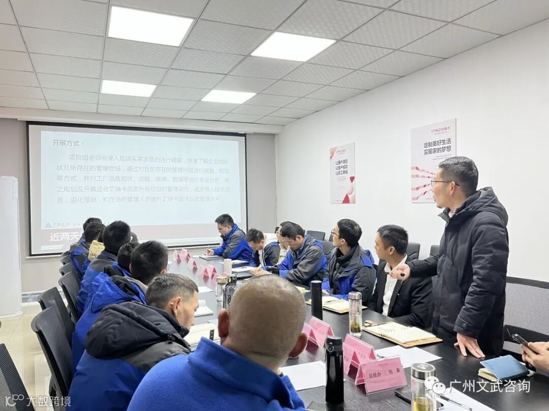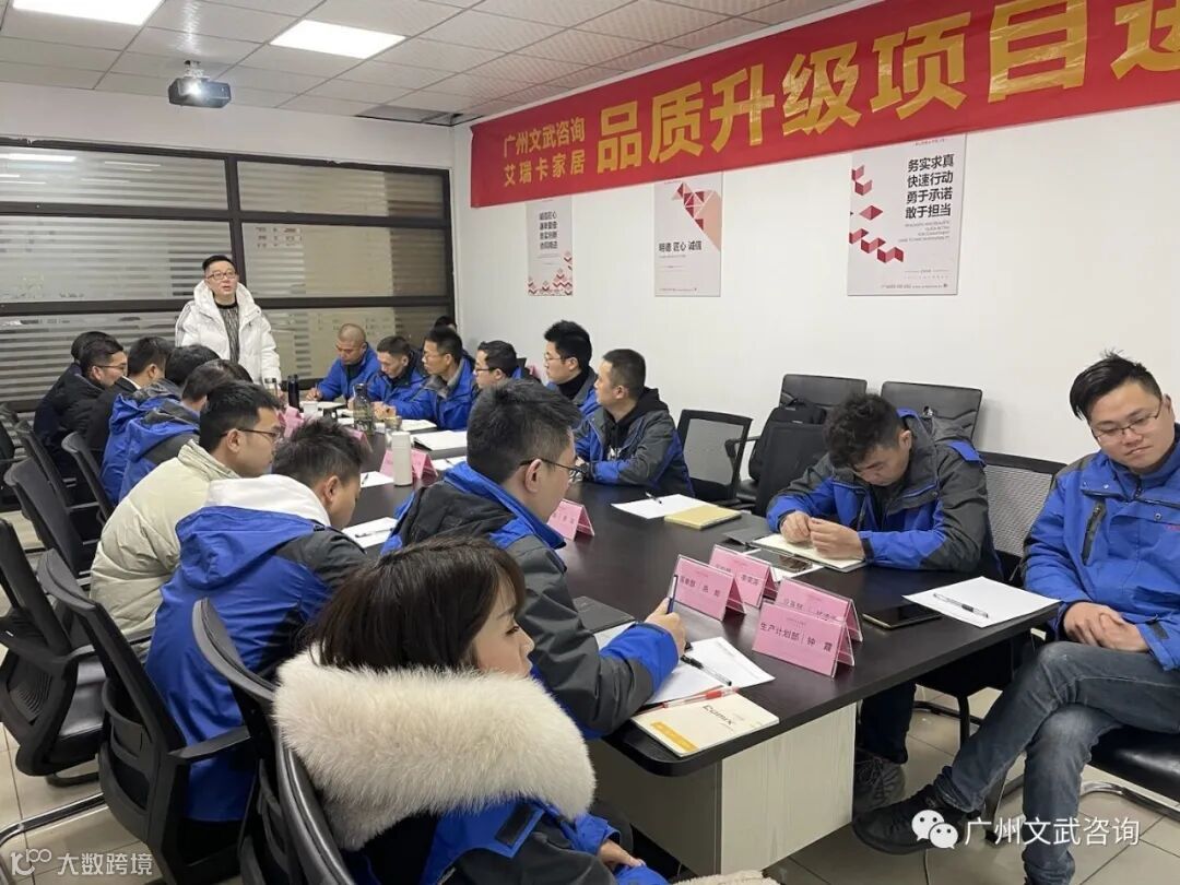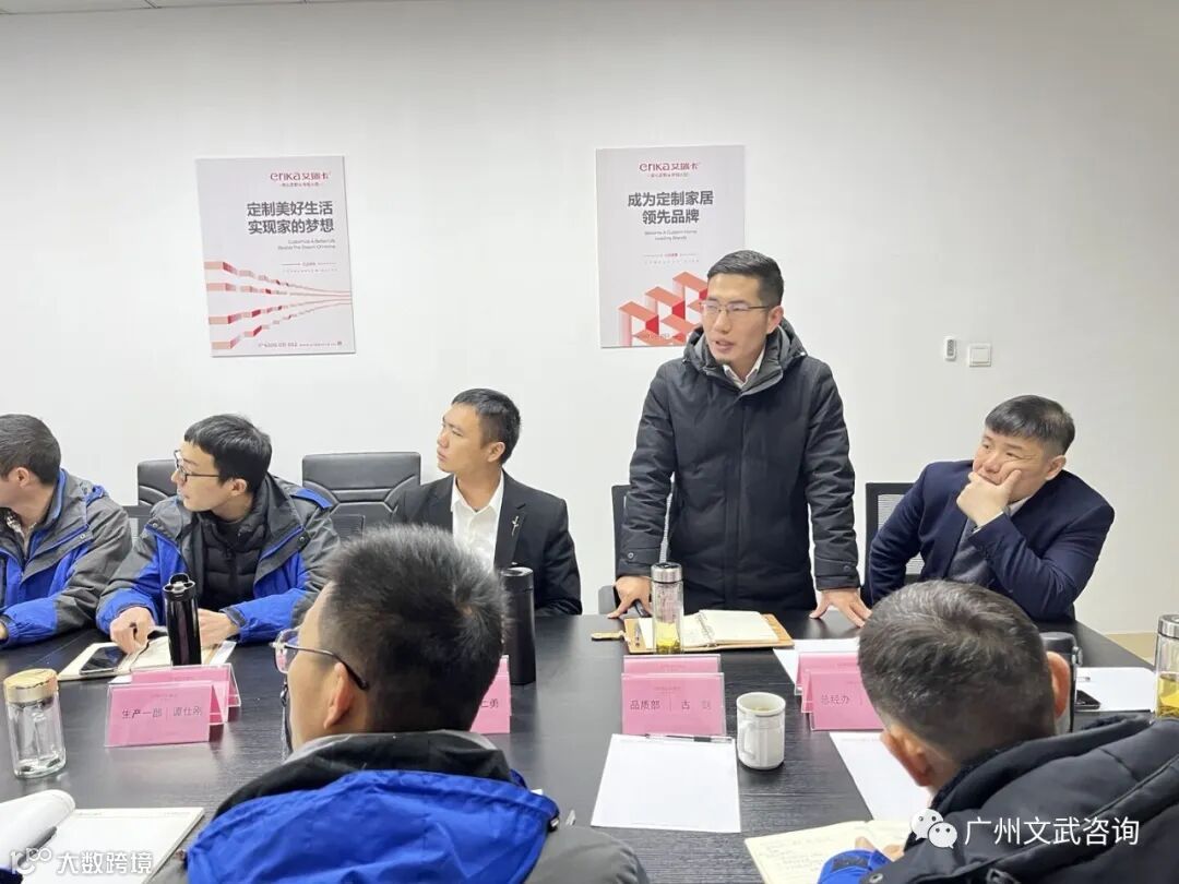 成都艾瑞卡家居聘请文武咨询创始人叶老师担任首席生产顾问,为艾瑞卡生产再创新高赋能。同时艾瑞卡家居总经理包总为文武项目组一行介绍近年来公司取得的成绩及介绍参观了新展厅。