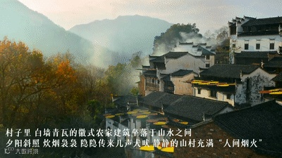 村子里,白墙青瓦的徽式农家建筑坐落于山水之间
