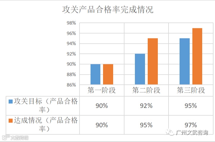 成立品质提升攻关项目小组,由生产总经理任总指挥;生产经理、品质经理任组长;质检员、车间主管、组长任组员;生产、采购、仓库等部门协助执行。