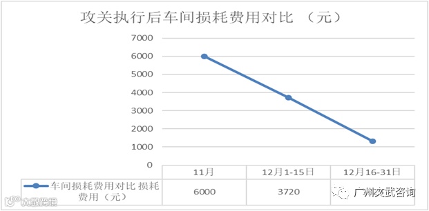 从改善攻关开始到结束历时20天,时间虽然不长,但效果是显著的。在经过三个阶段的改善攻关后,项目改善成果达到了SNZZ高层的预期目标,改善效果显著。过程损坏不良率由原来的18%,下降到3%;攻关前一次试装合格率(生产过程损坏问题)为82%,攻关后一次试装性合格率提升到97%;攻关前11月份统计损耗费用6000元,攻关后按最后一周的数据损耗费用计算,月损耗费用不到1000元,每个月为公司节约5000多元;攻关前半月板件损耗费用为3720元,攻关后半月板件损耗费用为1325元,减少费用2395元。