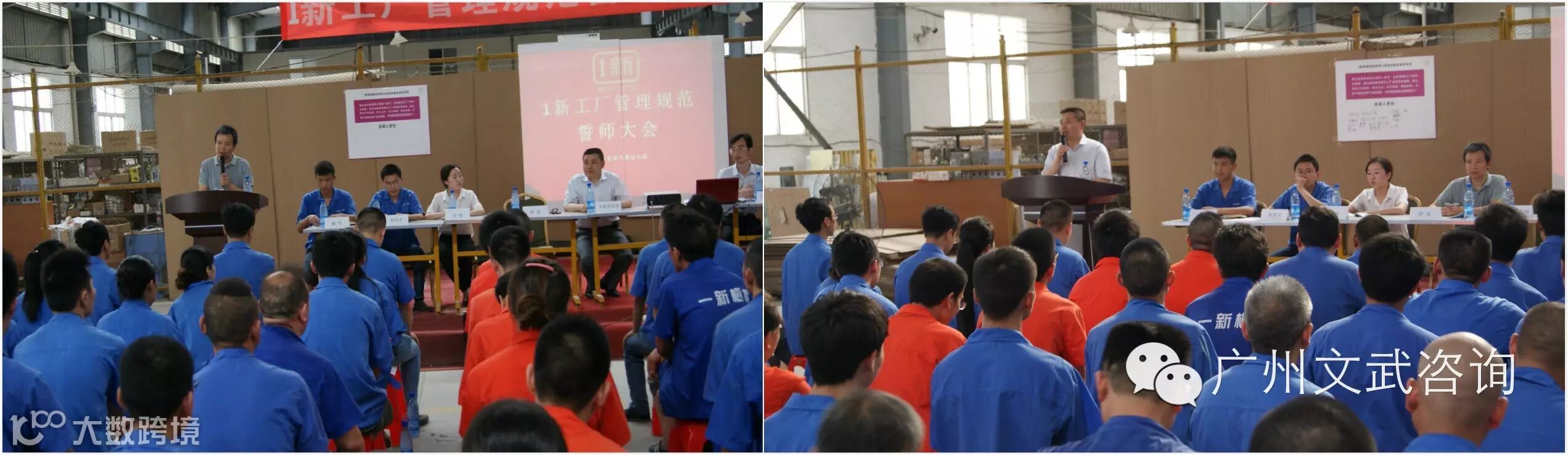 2015年6月,烈日当空,天气异常炎热,武汉和美家居1新橱柜工厂管理规范如火如荼的进行中。29日16:00,于1新橱柜生产车间隆重召开的管理规范誓师大会,宣告了为期25天的项目调研阶段结束和实施阶段正式启动,也宣告了1新橱柜工厂拉开了现代化、科学化管理序幕。广州文武企业管理咨询叶淦彬老师,带领其项目团队全程参加了本次盛会。