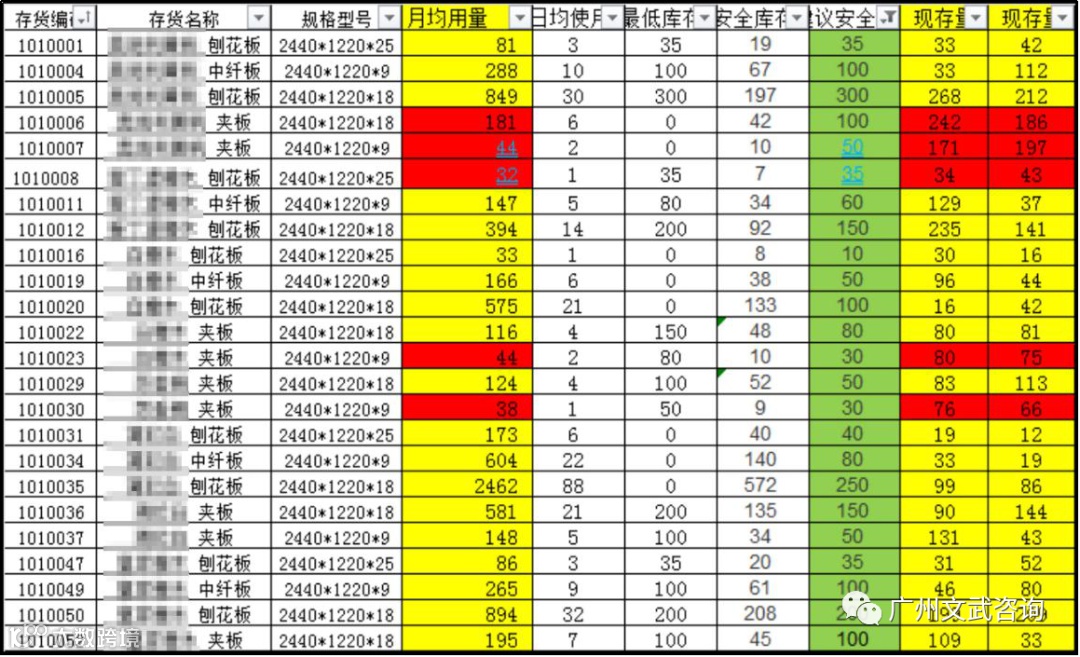 要想解决问题,首要是分析问题。同理,降低物料库存的重要一步是梳理原材料库存。该怎样进行条理清晰的梳理统计又是一大难题,文武项目组老师针对M公司现状,协助企业方人员高效的对公司仓库物料进行全面的盘点和归纳统计。经系统的数据整理,M公司的库存情况一目了然,项目组带领企业方管理人员制定了对物料库存的管控数据,设立安全库存,减少不必要的积压,从而提升整体库存周转效率。