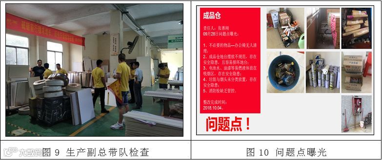 ②每周进行例检,对各车间各工序的现场改善成果进行打分。(如图9)评选出第一名和最后一名,对获得第一名的在周例会上进行红旗和奖金的发放。对最后一名的则颁发黄旗,并收取乐捐金额。