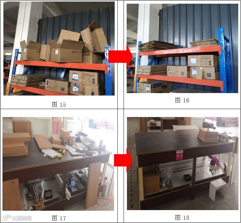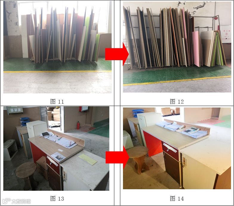 经过现场调研,项目组老师选取了车间的第一道工序作为7S管理样板车间的打造:开料工序作为整理整顿攻关的首站。在攻关活动中,带领主管及员工对前面两个“S”进行了整改,留下需要的物品,不需要的全部清除/大扫除。同时将物料归其位,将该区域所需要的物品放置在适当的位置。(各工序改善效果见下图11~图18)