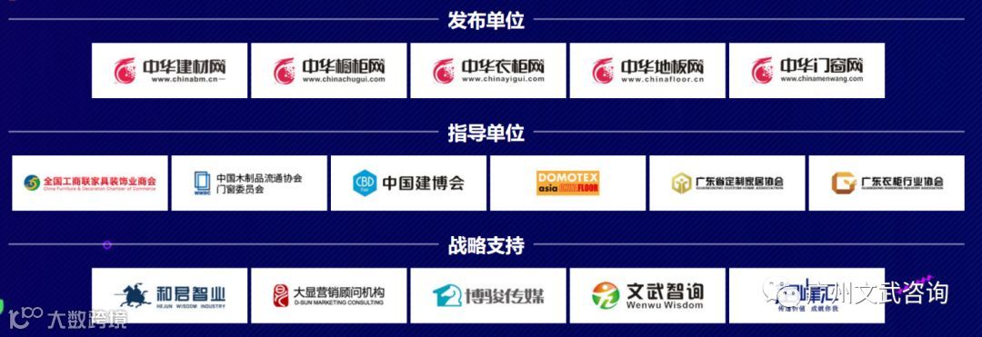 为保证数据的权威性、准确性,中华建材网邀请全国工商联家具装饰委员会、中国木制品流通协会门窗委员会、中国建博会、万耀企龙、广东省定制家居协会、广东衣柜行业协会作为指导单位;并结合和君智业、大显营销、博骏传媒、文武智询、定峰汇等战略支持单位的咨询建议。依托中华建材网、中华橱柜网、中华衣柜网、中华地板网、中华门窗网企业资源库,在项目组为期2个月的行业调研、数据汇总研判、观点提炼诠释后推出。