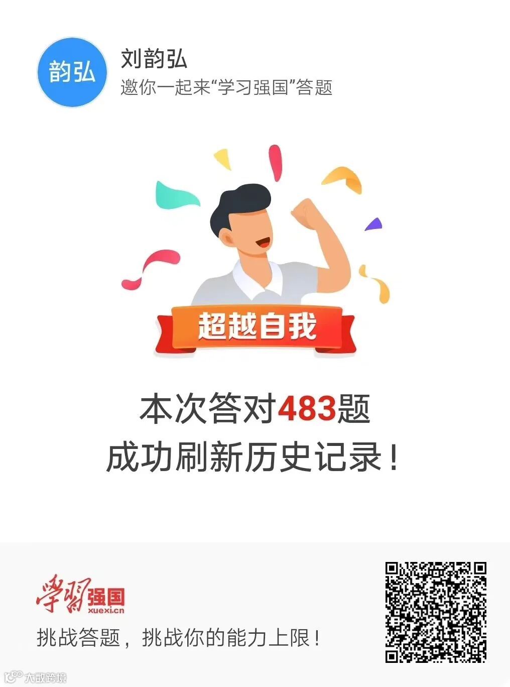 学习强国的挑战答题让我了解到了更广阔的的知识面,在学习过程中补足了知识面的短板,可以充分利用碎片时间,只要坚持每天学习,持之以恒,必定学识、积分双丰收!